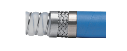 CRSL是一款浅波纹PTFE橡胶管,符合fda食品和USPVI制药级要求,外层包覆EPDM橡胶,耐磨耐老化,保护内层软管,防止钢丝伤手。浅波纹对流量的影响很小,更易于排水和清洗,适合洁净物料的输送和抽吸。耐高温,耐强腐蚀,加厚PTFE带来更强的抗渗透性,使工作寿命延长。可将PTFE翻边于接头密封面,防止物料对PTFE以外物质的腐蚀风险。螺旋钢丝环绕在ptfe软管波纹处,有效防止折瘪,增强高温下耐正负压能力。