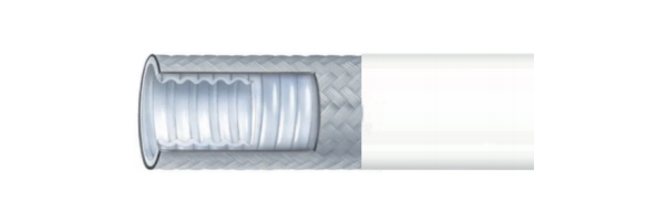 波纹PTFE管(PTFE无缝挤出工艺),拥有阻燃性,低渗透性,耐疲劳和耐化学品等多种特性的工业软管。带有不锈钢编织网,增加软管承压能力。外层为铂金硫化硅胶,表面易清洁,不易产生微生物。