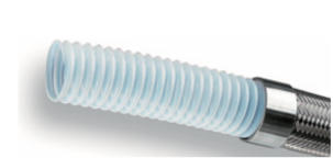 EZB - 纹波PTFE特氟龙软管(PTFE无缝挤出工艺),拥有阻燃性,低渗透性,耐疲劳和耐化学品等多种特性的工业软管。专门设计的薄管壁,轻型波纹结构,在不影响承压能力的同时,增加了软管的机动性。